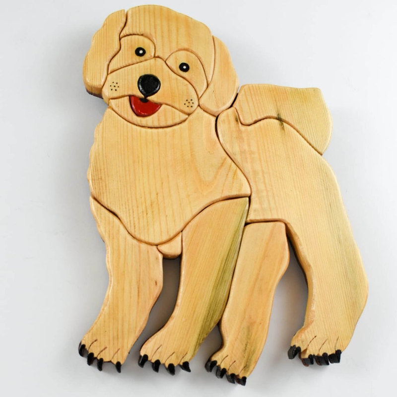 Wooden Wall Hanging Sculpture/ Hand Carved Wooden Art/ Dog /Teak/Pine Wood/L-10 inch/ W-0.25 inch/ H-11 inch from India House